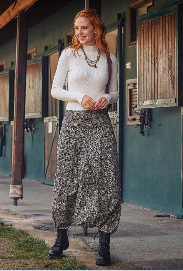 Be the first to review “Cotton Harem Pants With Pockets Button Accent Comfy”